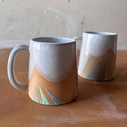 Triangles Geometric Mug Handmade Ceramic - Coral
