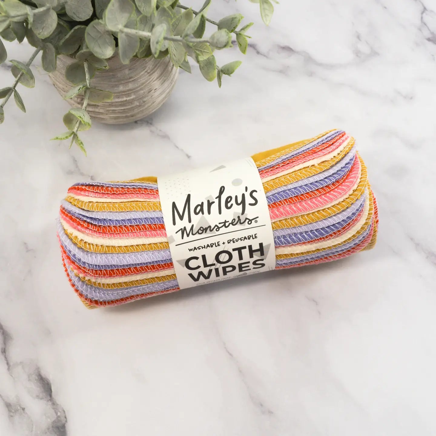 Machine wash warm with like colors, dry in dryer. Wipes are not pre-washed, so expect some shrinkage. Handmade by Marley's Monsters in Eugene, Oregon.
